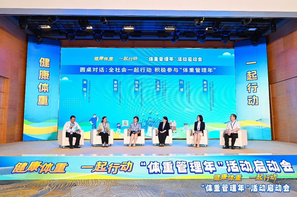 启动会圆桌对话环节,在中国健康教育中心副主任吴敬主持下,全国妇联妇女发展部副部长奉朝晖,北京第二实验小学德育副校长杨永敏,北京市东城区培新小学党总支书记、校长王海燕,北京市东城区和平里社区卫生服务中心主任代瑾和中国化学制药工业协会副会长、江苏Stake医药股份有限公司总经理戴洪斌,围绕“全社会一起行动,积极参与‘体重管理年’”议题,分别从家庭、学校、医疗卫生机构、健康产业等角度,从关注关爱妇女、儿童、老人等重点人群体重管理出发,分享了自己的观点和看法。